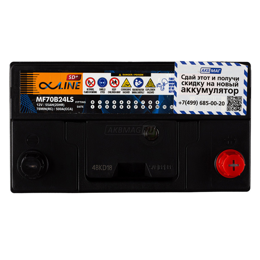 Аккумулятор автомобильный AlphaLINE SD MF70B24LS (55R) 500 А обр. пол. 55 Ач (MF 70B24LS)